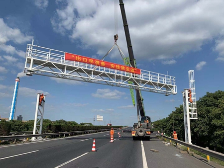 “嘉紹高速嘉興方向K126+500自由流ETC門架吊裝完成!”9月26日下午5時40分,嘉通高速管理公司所轄高速最后一套新建自由流ETC門架吊裝完成,標志著嘉通高速取消高速公路省界收費站工作取得了階段性的成果。從8月20日第一套門架吊裝開始,嘉通高速管理公司以日均吊裝4套、最高日吊裝12套的“加速度”完成了所轄四條高速公路全部119套新建自由流ETC門架的吊裝工作。