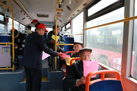 活動現(xiàn)場,公交志愿者們頭戴小紅帽,手拿宣傳單,積極向廣大市民宣傳《憲法》相關(guān)基本常識和《浙江省城市公共交通車輛乘坐規(guī)則》,并耐心解答市民問詢,為他們提供憲法、公交政策宣傳和公交出行服務(wù)。為進一步擴大宣傳面,志愿者們走進車廂,向公交駕駛員和乘客們宣講相關(guān)內(nèi)容。“師傅,最新的《中華人民共和國憲法修正案》在今年3月11日召開的十三屆全國人大一次會議上已經(jīng)通過,您知道這個消息嗎?其實,憲法和我們的生活息息相關(guān),我這里有兩份《憲法》和公交乘坐規(guī)則的宣傳單請您拿好,坐車的時候可以看一看,了解下我們公民的基本權(quán)利、義務(wù)和公交乘坐規(guī)則等知識。”乘客們拿到宣傳單后,都認真地看了起來……