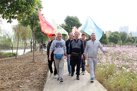 活動當天,大家齊聚在新塍綠道口,集體合影后,興致高昂地向7公里長的綠道邁進。一路上,繁花盛開,綠樹成蔭,歡聲笑語,熱鬧非凡!各基層工會鮮艷的旗幟隨風飄揚,在鮮花、綠樹、湖光、水色的掩映下勾勒出了一道道靚麗的風景線,為這個秋日的早晨增添了勃勃的生機。